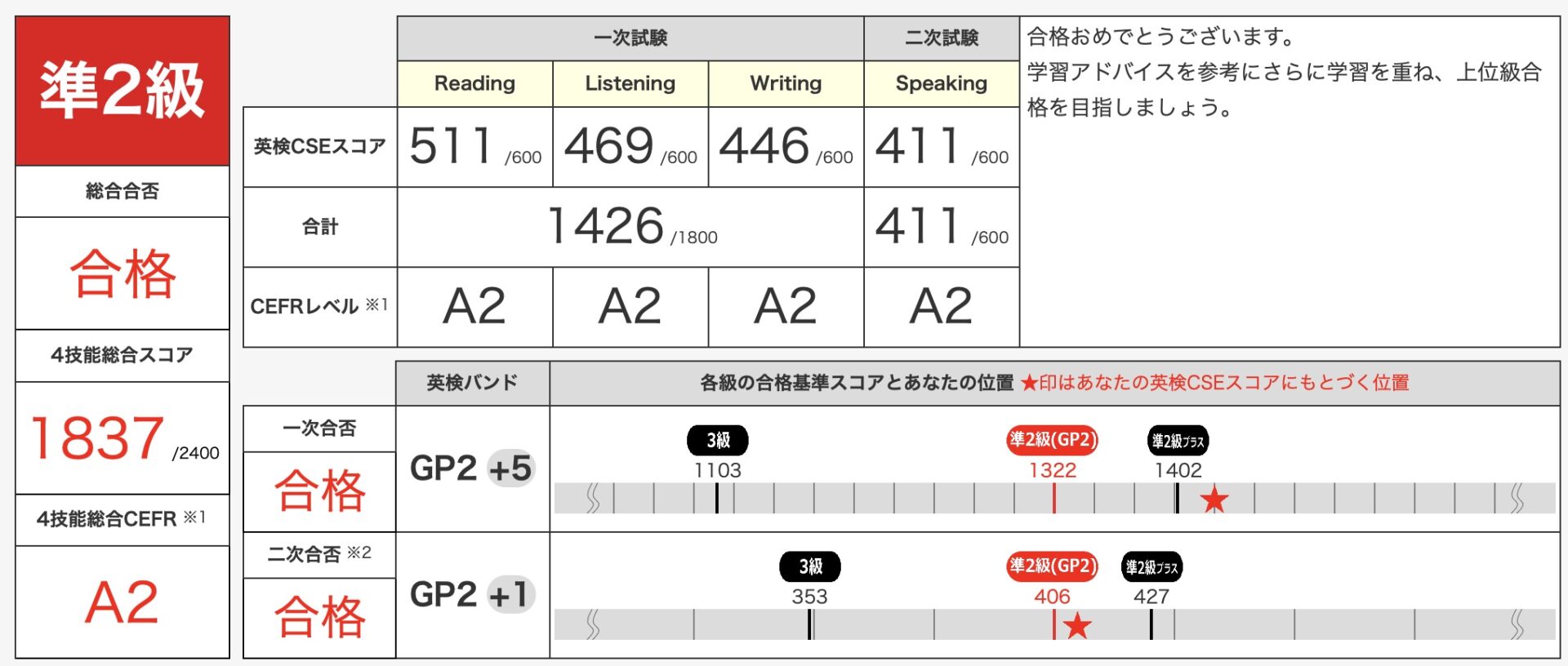 中学2年生 英検準2級合格