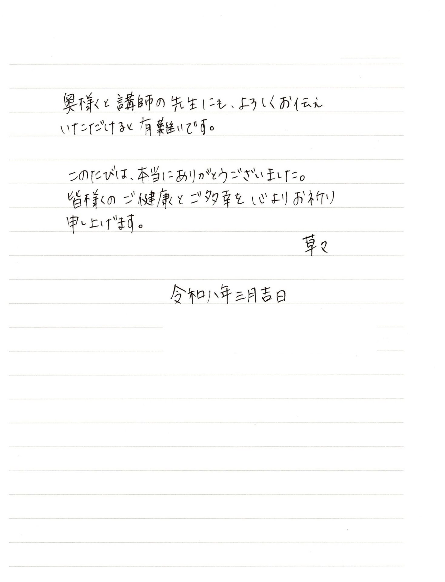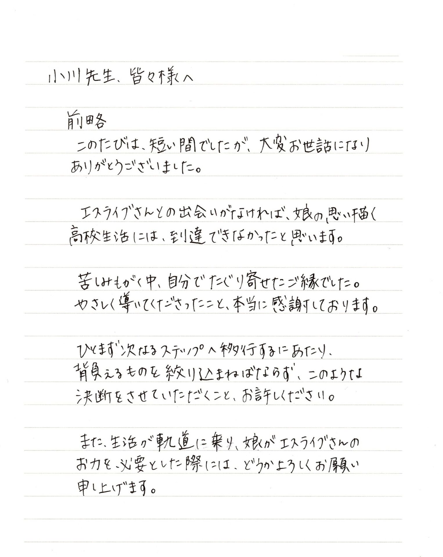 ご家庭からいただいた温かいお手紙をご紹介します。