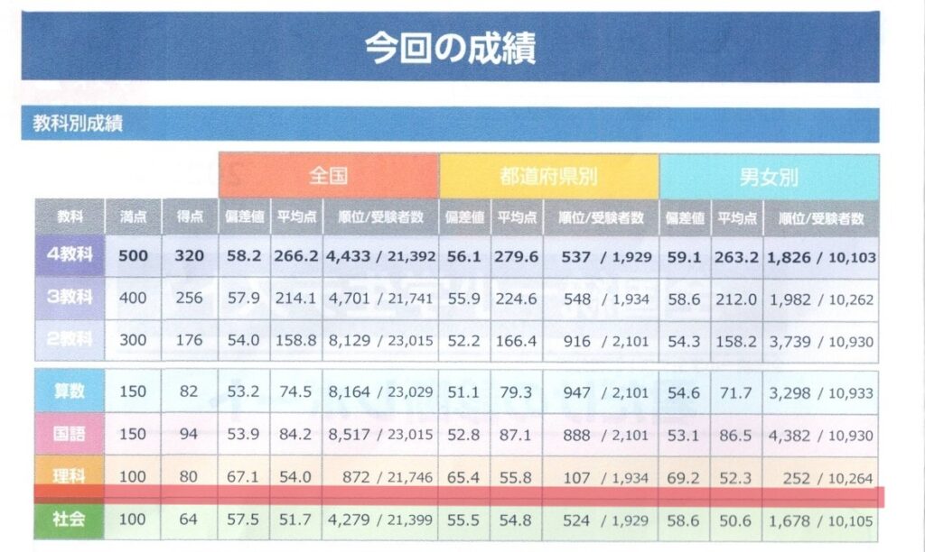 ③初めての四谷大塚模試──結果は偏差値58.2!
