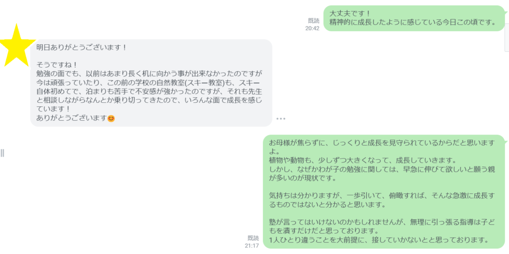 中学1年生の保護者様とのLINEより